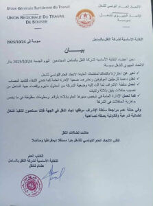 Les syndicalistes ont averti que si l’autorité de tutelle ne reconsidère pas sa position concernant le transport public dans la région, ils se tiennent prêts à engager des actions de protestation légales et progressives, afin de défendre les droits des agents et de garantir un service sûr et efficace pour les usagers.