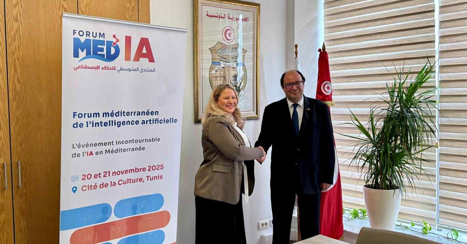 Les préparatifs du Forum méditerranéen sur l’intelligence artificielle ont été au centre d’une réunion de travail tenue jeudi 25 septembre 2025 au siège du ministère des Technologies de la communication. La rencontre a réuni le ministre tunisien Sofiène Hemissi et Mme Nadia Hai, déléguée interministérielle française à la Méditerranée, actuellement en visite officielle en Tunisie.