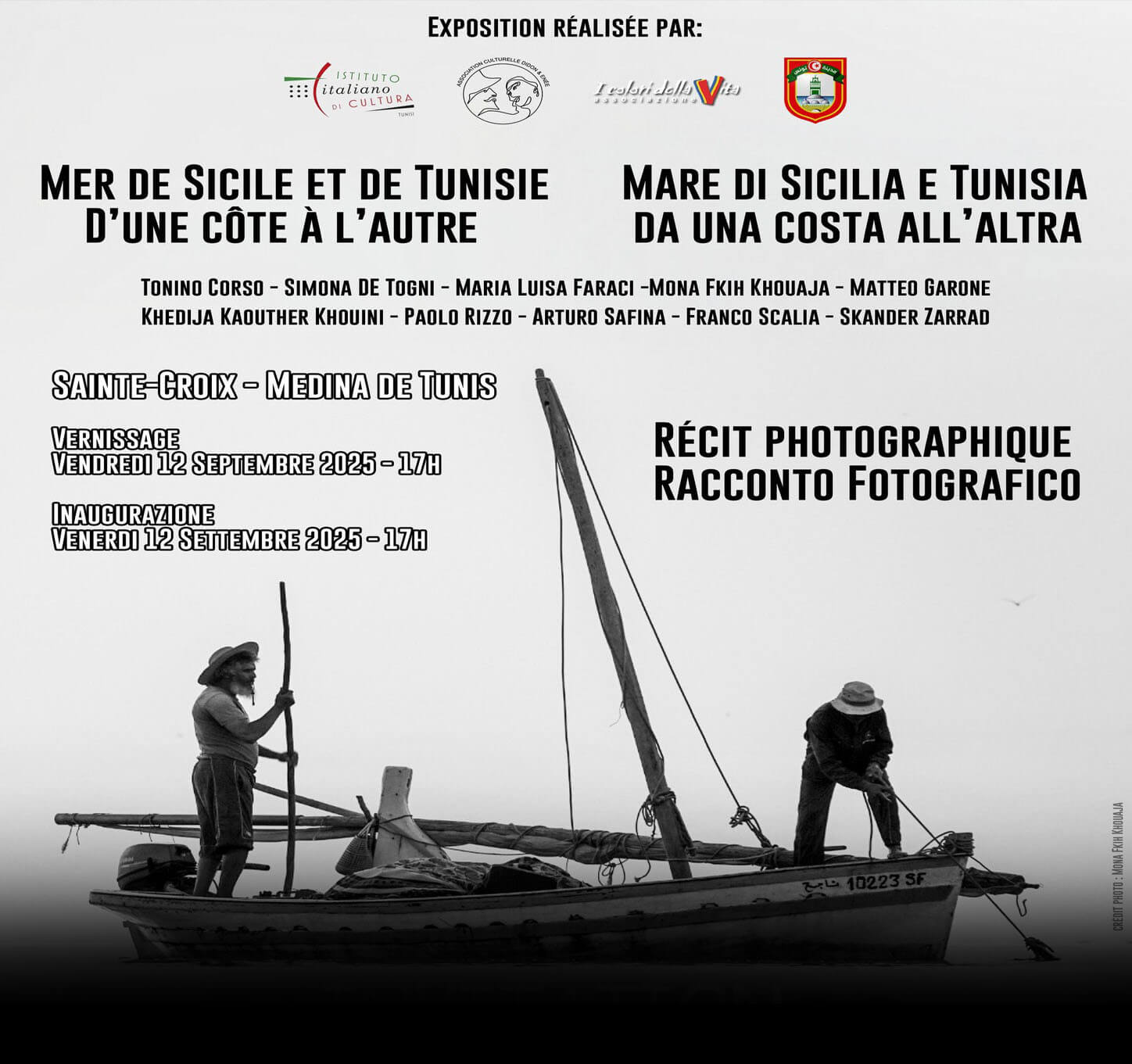 L’exposition photographique « Mer de Sicile et Tunisie : d’une côte à l’autre » se tiendra du 12 au 21 septembre dans l’ancienne église Sainte-Croix, au cœur de la Médina de Tunis. Cet événement artistique met en lumière le travail de photographes tunisiens — Mona Fkih Khouaja, Skander Zarrad et Khadija Kaouther Khouini — ainsi que celui de leurs homologues italiens, Paolo Rizzo, Tonino Corso, Simona de Togni, Maria Luisa Faraci, Matteo Garone, Arturo Safina et Franco Scalia.